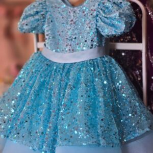 Princess Serena Aqua Sequin Tulle Dress with Tulle Train