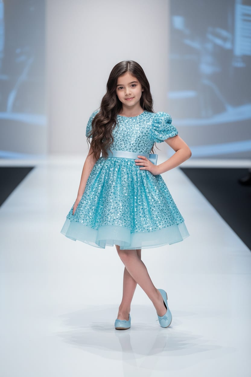 #BluePrincess, #XeniaTutuGown, #SequinDress, #KidsPartyDress, #ToddlerGown, #GirlsSpecialOccasion, #BlueTulle, #PuffSleevesDress, #ElegantKidsWear, #PrincessLook