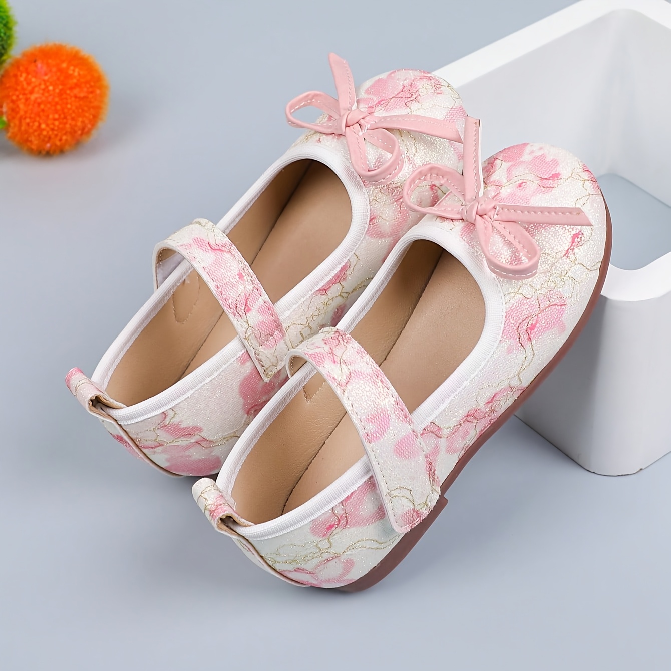#PrincessShoes, #ElegantBow, #PinkFloral, #PartyShoes, #GirlsFootwear, #SpecialOccasion, #ComfortAndStyle, #FairyTaleLook, #CushionedSole, #CharmingDetails