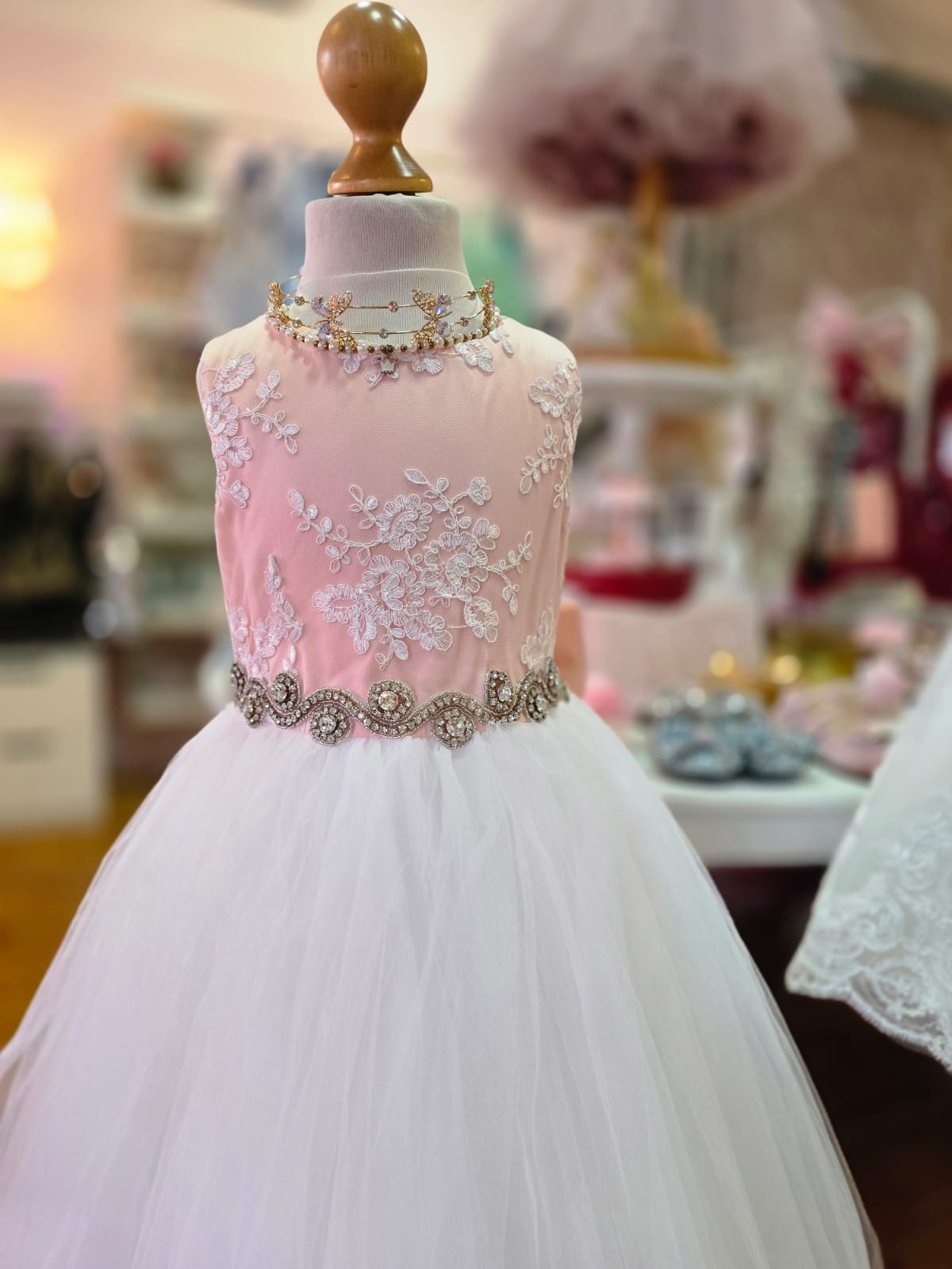 Graceful and enchanting, the Peach & White Princess Party Long Dress Gizi is designed to make every special moment feel like a fairy tale. The delicate combination of soft peach tones and elegant white creates a beautifully balanced look that feels both romantic and timeless. With its flowing long silhouette and refined detailing, this gown moves gracefully with every step, creating a magical presence perfect for celebrations. Designed for unforgettable occasions, it pairs beautifully with tiaras, boleros, and sparkling accessories, making it ideal for birthdays, weddings, parties, and elegant family gatherings where every young princess deserves to shine.