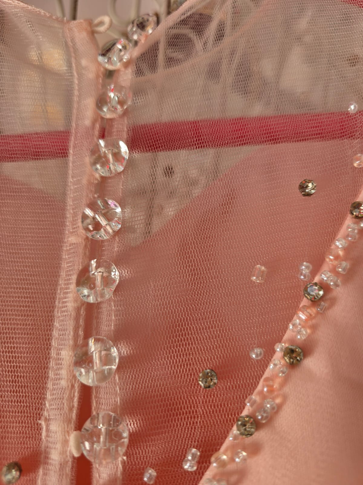 Luxurious peach satin and tulle mix for graceful movement
