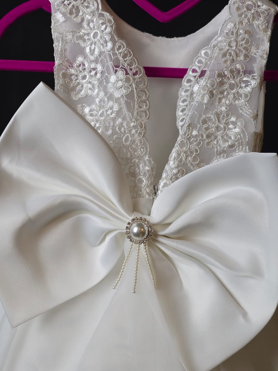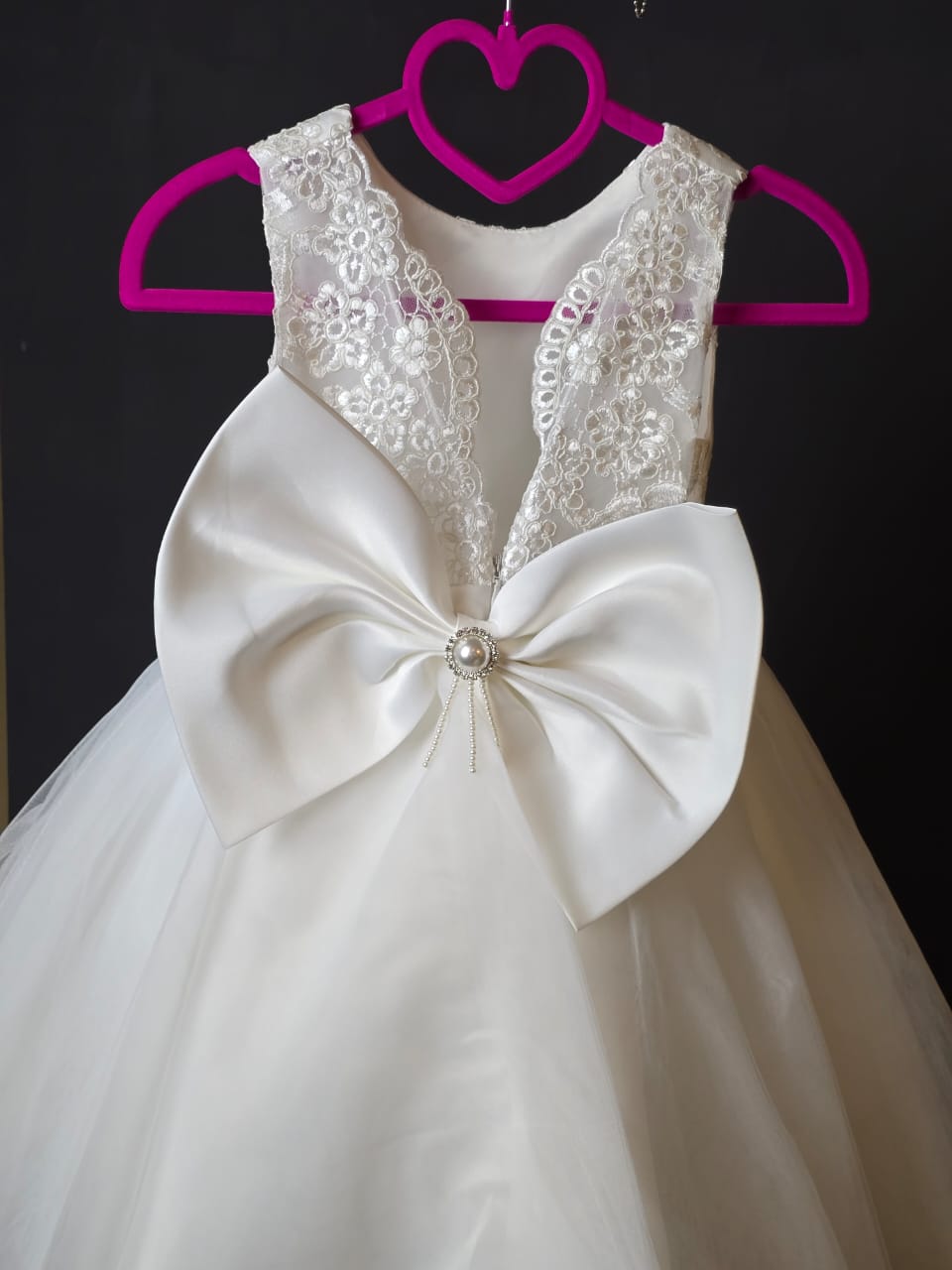 #WhiteDress, #LaceDress, #TulleDress, #PrincessStyle, #ElegantLook, #SpecialOccasion, #WeddingGuest, #BirthdayDress, #FormalWear, #LuxuryFashion, #StatementBow, #PearlEmbellished