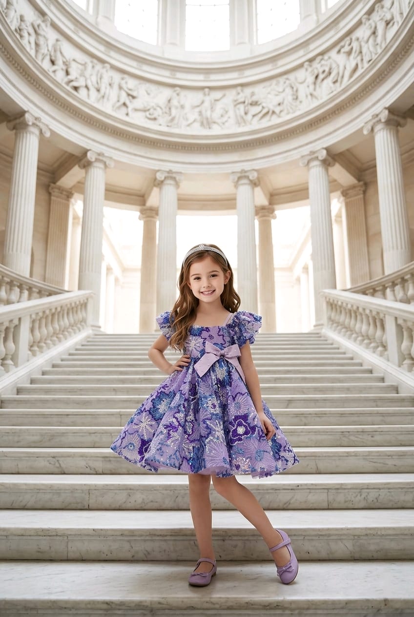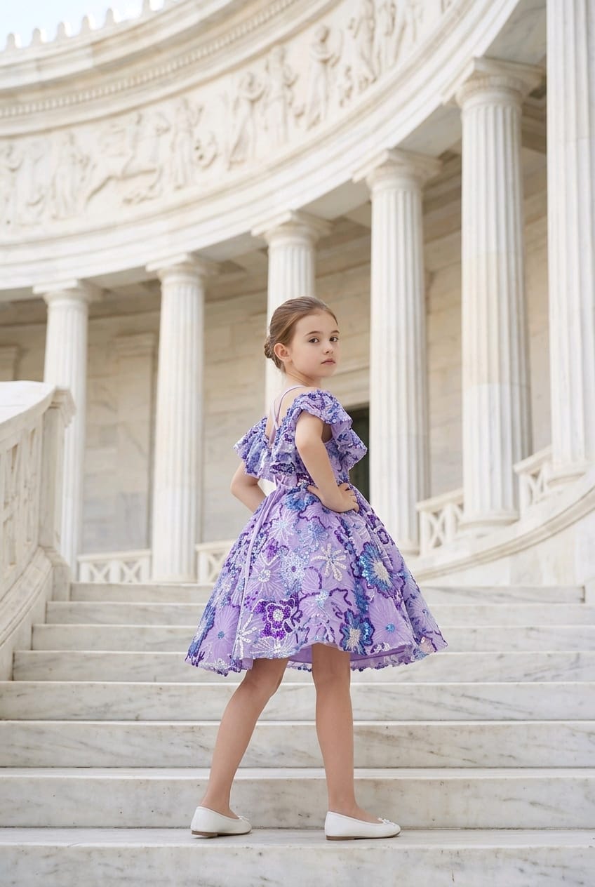 Purple Sequinn Flower Dress Sparkly Bianca