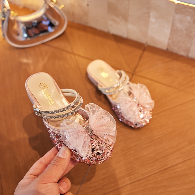 #GirlsHeels, #SparklyShoes, #PartySandals, #PrincessStyle, #PinkBow, #SpecialOccasion, #GlamLook, #StylishFootwear, #DressyShoes, #ElegantDesign