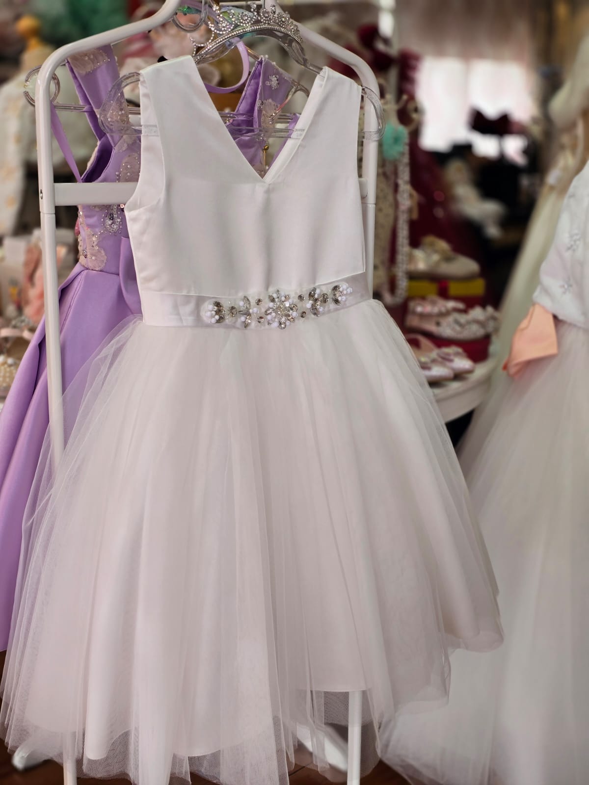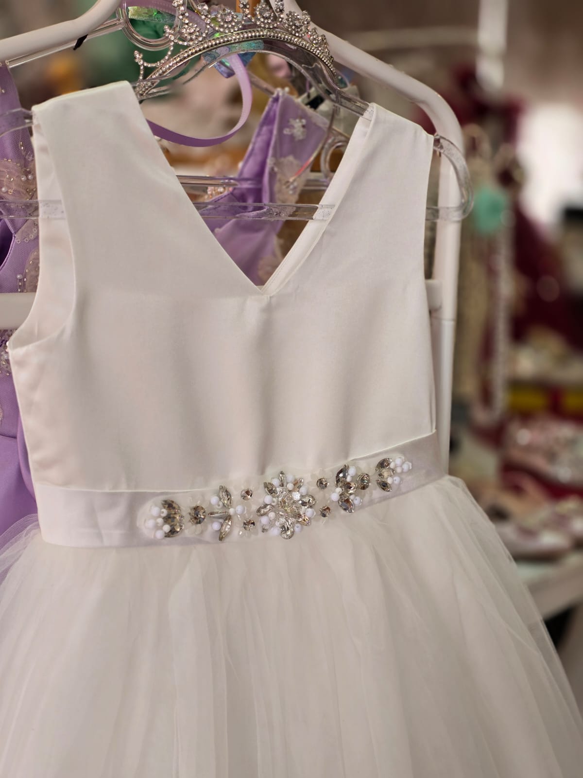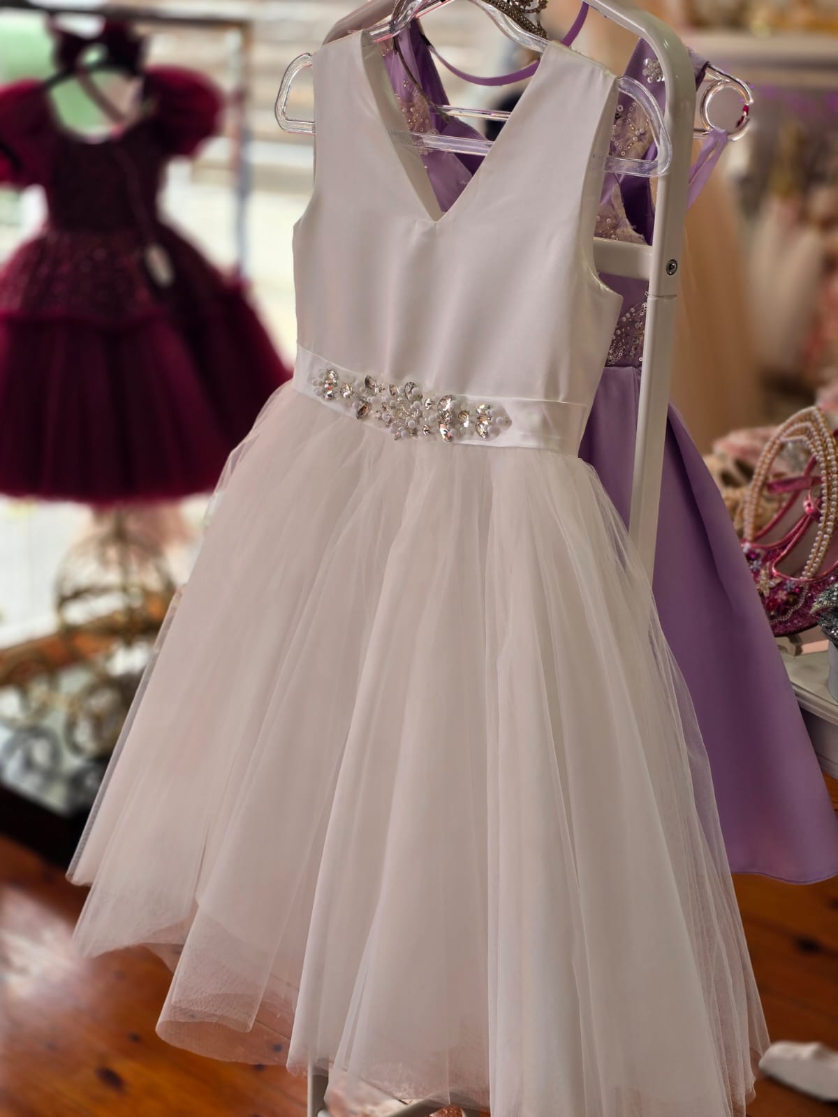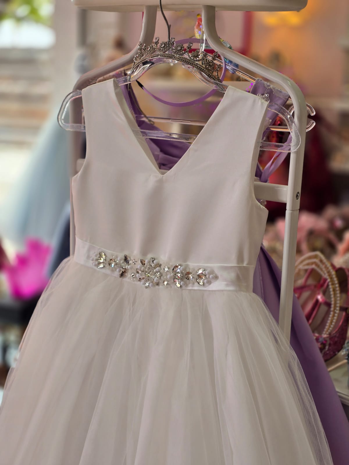 #PrincessDress, #GirlsPartyDress, #WhiteTulleDress, #ElegantGirlsDress, #FormalGirlsWear, #FairytaleDress, #FlowerGirlDress, #KidsBoutique